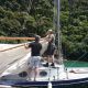At this point we felt we had corrected the tangle in the chain that was out (only 50 metres) so we positioned ourselves to set anchor again and had attempt number 2. Setting anchor a couple of times is not that uncommon in rocky sea floor conditions, as sometimes you get unlucky and the anchor drops ontop of a larger rock than the surrounds then falls to the bottom on an angle which takes a while to correct. The worse thing that can happen, which is what we encountered (we think) is the anchor ended spinning on the chain twist all the way down, then ended up on its back, so we had no chance to set it and have it dig in. So we tried again in the failing light. We dropped the anchor down in 25 metres and started rolling backwards against the seafloor slope deploying about 50 metres again before the jamming started happening again. I figured instead of pulling it up we were better in the fading light to try and drop more down to get to at least 75 to give us enough angle to begin to try to set. What a struggle attempting to do that manually was. Alex was in the chain locker trying to feed the chain into the windlass tube straight and unkinked, but as we got further into the chain the more we realised just how twisted this section of the chain was. We eventually got 75 metres out and had been drifting all across the bay as we did it, so were no longer in a position protected by the headlands. At least we werent drifting towards the shore and the rocks, but we were now in much deeper water (30 metres) and the chain appeared to be bouncing across the bottom. Time to call it quits and go for plan b. Alex and I pulled up the chain again manually as it kept skipping on the windlass, all the while talking about how hard life must have been back in the day on the tall ships that had no power assisted anything!